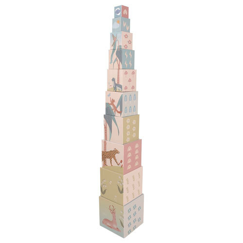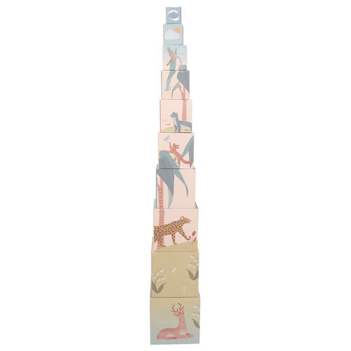 Kvalitets Atan stabeltårn, der er egnet til børn ældre end 18 måneder. Fremstillet i blødt letvægts karton med søde motiver i pastelfarver, der kommer fra Atan. Tårnet består af 10 kasser i forskellige størrelser, der træner dit barn i finmotorik ved at placere kasserne ovenpå hinanden. Her kan dit barn slippe fantasien løs og bruge mange timer på at udforske og lege med stabeltårnet.