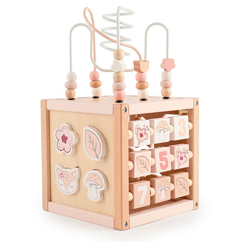 Underholdende aktivitetslegetøj, der fremmer dit barns motoriske udvikling ved hjælp af de forskellige aktiviteter på terningen. Den kommer fra tyske Bieco, hvor den er fremstillet i 100% FSC-certificeret træ i super god kvalitet. Kuglelabyrinten på toppen er fremstillet i stål.