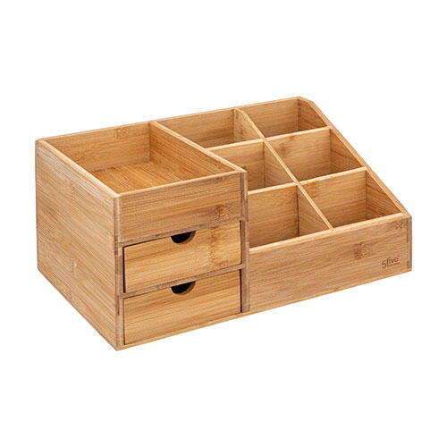 Pladsbesparende organizer med skuffer, der er fremstillet i bæredygtigt og miljøvenligt bambus. Kommer fra franske 5five og yderst velegnet til forskellige typer af opbevaring i boligen. Kan eksempelvis benyttes til opbevaring af makeup på badeværelset eller til kontorartikler.