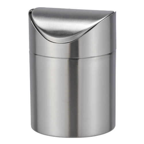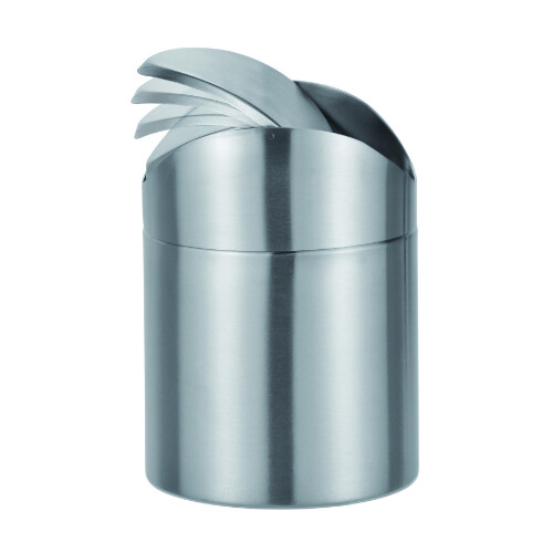 Bord/kosmetik affaldsspand i tidløst design, fremstillet i flot børstet rustfrit stål 18/0 med vippelåg. Beregnet til opbevaring af småaffald og velegnet til at stille på badeværelset eller på køkkenbordet m.m.