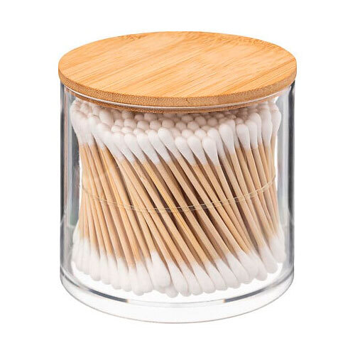 Praktisk Selena organizer, der er fremstillet i robust plast med 100% FSC-certificeret bambuslåg, som kommer fra franske 5five. Kan benyttes til opbevaring af vatpinde på badeværelset og sikrer, at du altid har disse i nærheden, når de skal bruges. Det simple og minimalistiske design passer ind på ethvert badeværelse. Der medfølger 300 vatpinde i beholderen.