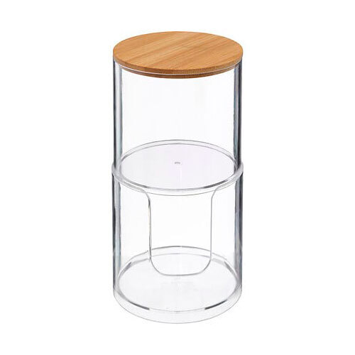 Pladsbesparende Selena 2-i-1 organizer, der er fremstillet i robust plast med 100% FSC-certificeret bambuslåg og kommer fra franske 5five. Kan benyttes til opbevaring af vatrondeller og vatpinde på badeværelset og sikrer, at du altid har disse i nærheden, når de skal bruges. Det simple og minimalistiske design passer ind på ethvert badeværelse.