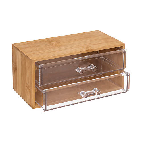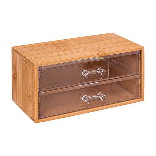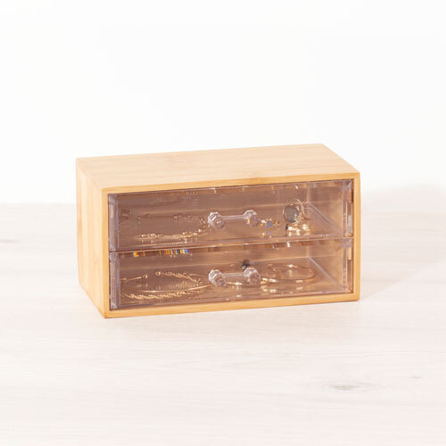 Rummeligt smykkeskrin med to skuffer, der er fremstillet i bæredygtigt, miljøvenligt og 100% FSC-certificeret bambus med udtræksskuffer i plast. Ideel til opbevaring af smykker og kommer fra franske 5five.