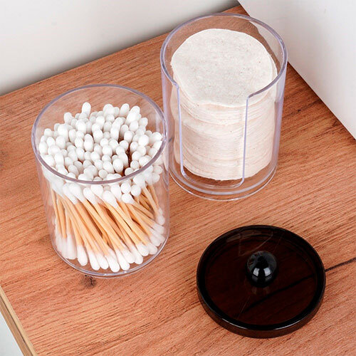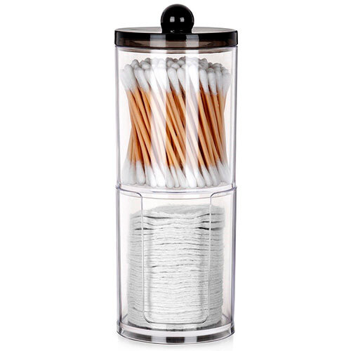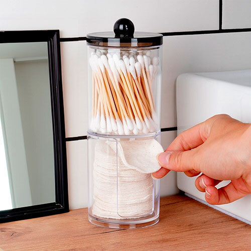 Pladsbesparende Selma organizer, der er fremstillet i robust plast med mørktonet, gennemsigtigt låg. Forsynet med hul i siden af den nederste beholder, så du hurtigt og nemt kan trække en vatrondel/vatpind ud uden at løfte låget af. Kan benyttes til opbevaring af vatpinde og vatrondeller på badeværelset og sikrer, at du altid har disse i nærheden, når de skal bruges. Det simple og minimalistiske design passer ind på ethvert badeværelse.
