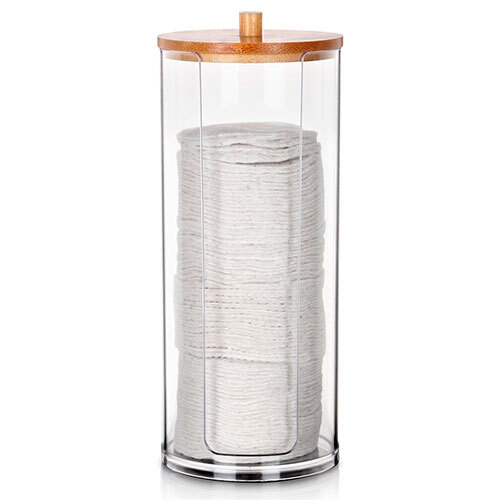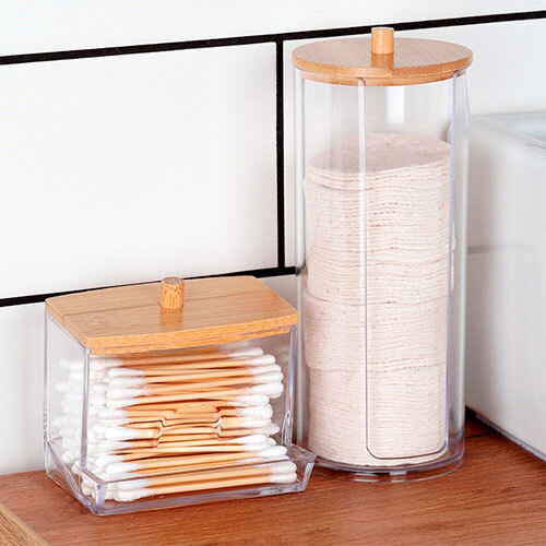 Pladsbesparende organizer, der er fremstillet i robust plast med bambus låg og kommer fra Vilde. Kan benyttes til opbevaring af vatrondeller på badeværelset og sikrer, at du altid har disse i nærheden, når de skal bruges. Det simple og minimalistiske design passer ind på ethvert badeværelse.