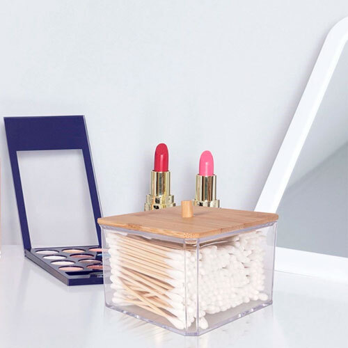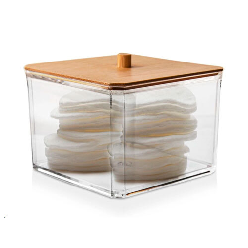 Pladsbesparende organizer, der er fremstillet i robust plast med bambus låg og kommer fra tjekkiske Orion. Kan benyttes til opbevaring af vatrondeller eller vatpinde på badeværelset og sikrer, at du altid har disse i nærheden, når de skal bruges. Det simple og minimalistiske design passer ind på ethvert badeværelse.