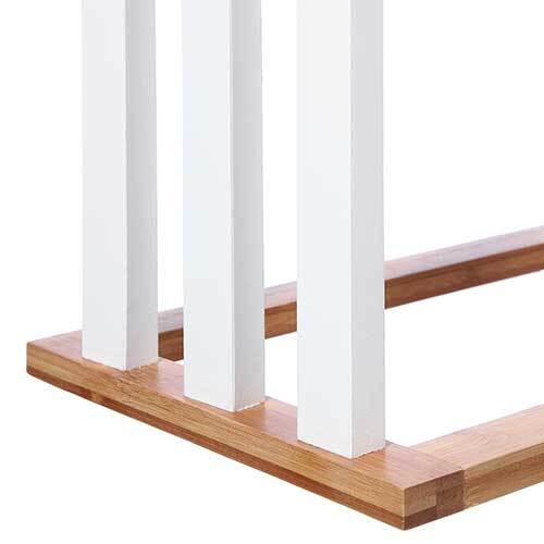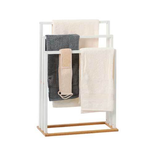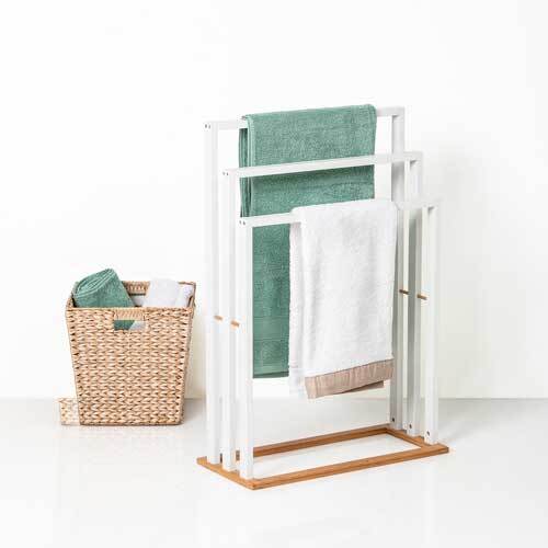 Fritstående Natureo håndklædestativ i tidløst design, der er fremstillet i miljøvenligt og bæredygtigt bambus og MDF træ. Håndklædeholderen er forsynet med tre tværstænger, der kan benyttes til ophæng af håndklæder eller badetøj m.m. Håndklædeholderen er nem at samle og monteringsmaterialer medfølger.