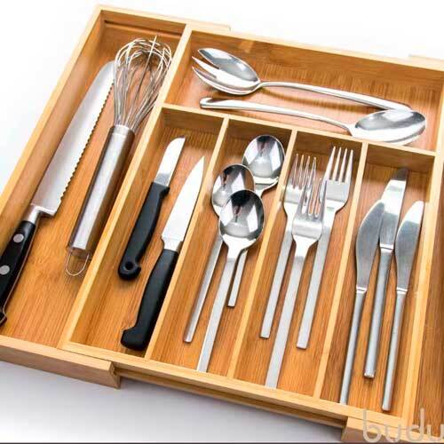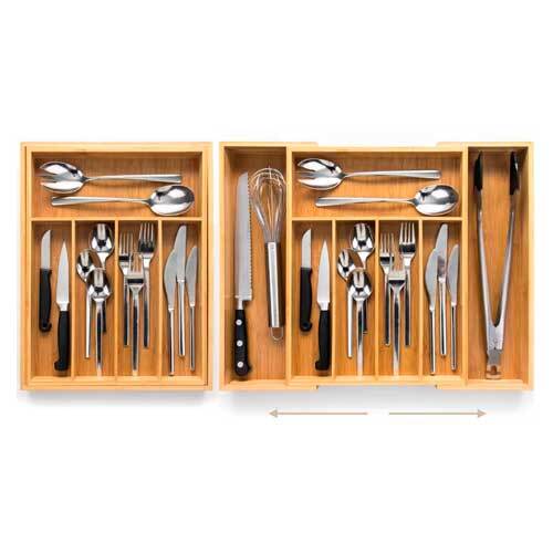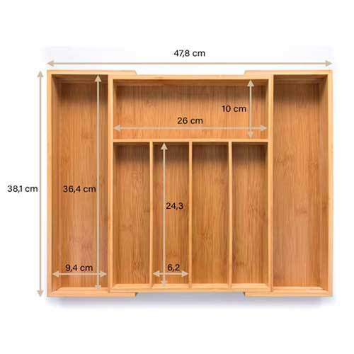 Justerbar bestikbakke i bambus - Dybde 38 cm.