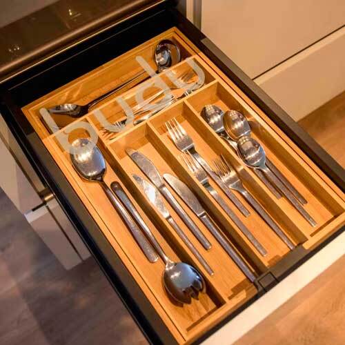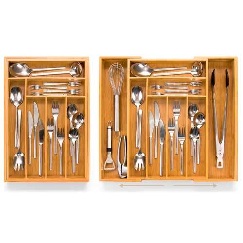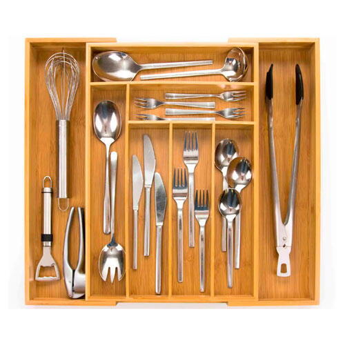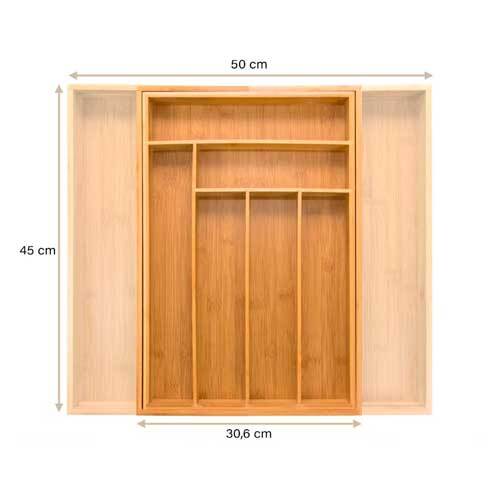 Justerbar bestikbakke i bambus - Dybde 45 cm.