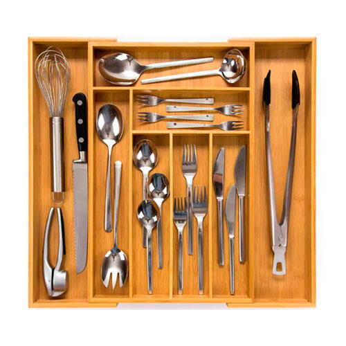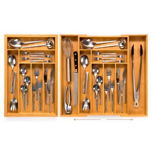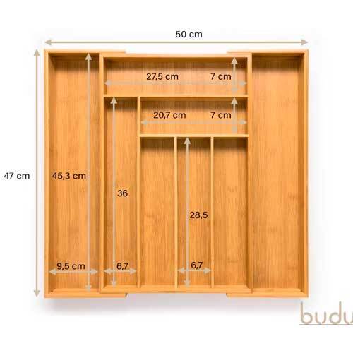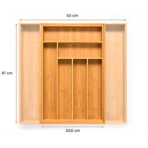 Justerbar bestikbakke i bambus - Dybde 47 cm.