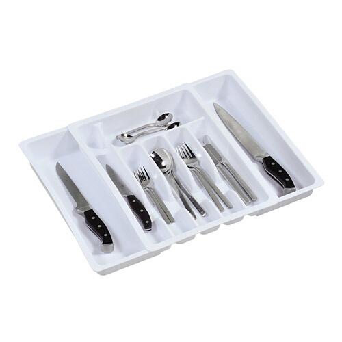 Justerbar bestikbakke i fugtresistent hård plast. Bestikbakken er forsynet med 6-8 rum, hvor du kan placere dine knive, gafler, skeer, teskeer og pizzaskærer m.m. efter behov. Passer ned i de fleste skuffer og er meget let at rengøre.