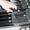 En super nem måde at få dine knive væk fra køkkenbordet eller væggen, er med denne smarte knivindsats, der med sit design er skabt til at ligge i køkkenskuffen. Knivblokken er flytbar og kan dermed skabe overblik i din køkkenskuffe.