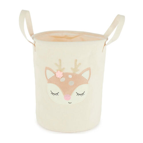Utroligt sød Ella krondyr opbevaringskurv, der giver dig mulighed for let at holde orden i legetøj, tøj og andre småting på børneværelset. Fremstillet i god kvalitet i en blanding af 60% bomuld og 40% polyester, der kommer fra tyske Bieco. Forsynet med vandtæt PE-belægning på indersiden, der sørger for at kurven er fugtresistent, hvilket gør den yderst anvendelig som vasketøjskurv. Udstyret med metalring i toppen for øget stabilitet, samt to bærehåndtag for nem transport. Kan rengøres med mild sæbe og en fugtig klud. Produktet er testet fri for skadelige stoffer.