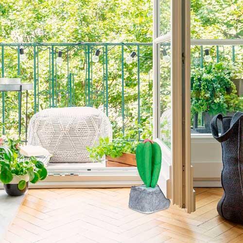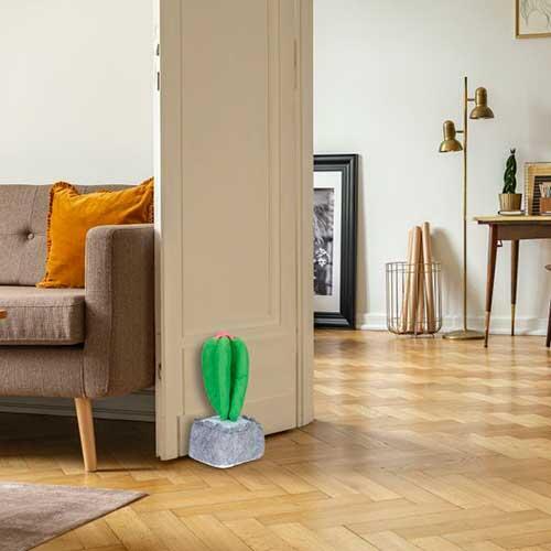 Praktisk og dekorativ dørstopper af kaktus. Dørstopperen er fremstillet i polyester og fyldt med fint sand. Også velegnet til terrassedør.