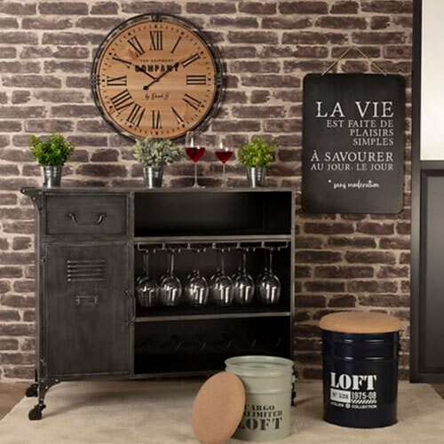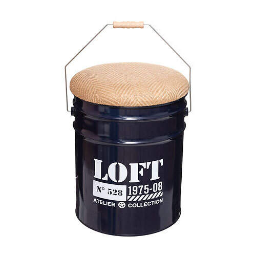 Der medfølger to stk. i forskellige højder og de er begge forsynet med dekorativt motiv på fronten. Begge puffer er fremstillet i metal og har en blød pude på toppen. Den høje puf er forsynet med mørkeblå lakering og den lave puf er med støvet grøn lakering. Kommer fra franske Atmosphera.
