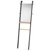 Topkvalitets håndklædestige i moderne, lækkert design fra Oak-serien, der kombinerer træ og metal på stilfuld vis. Fremstillet i solidt metal med sort mat pulverlakering, samt tværstænger i egetræ og med stort spejl med tilhørende hylde. Stigen er yderligere forsynet med skridsikre fødder og knager på siden til ophæng af håndklæder og tøj.