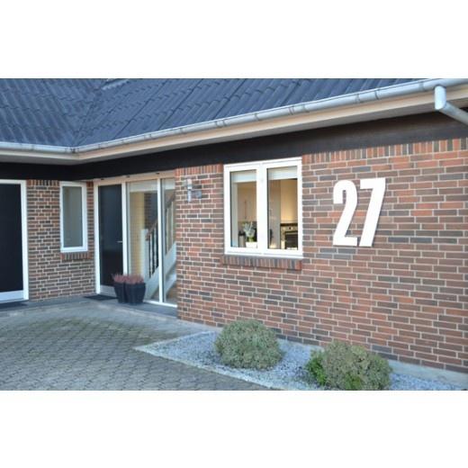 Eksklusivt hvidt nummer i vejrbestandigt materiale. Et tydeligt husnummer er en vigtig del af fronten på din bolig. Det er vigtigt at andre nemt kan finde netop din bolig, når der skal afleveres post og pakker, når nye venner kommer på besøg eller hvis uheldet er ude, at et udrykningskøretøj hurtigt kan finde frem til dig.
