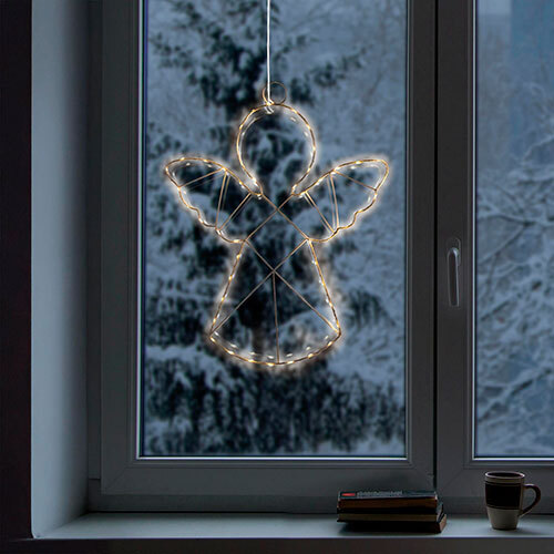 Dekorativ engel med 48 stk. varmhvide LED lys, der kommer fra tyske Holly Bell. Den er fremstillet i plast og egner sig kun til indendørs brug. Utrolig hyggelig at have hængende i boligen, både for din egen skyld og når du får gæster på besøg i juletiden. Forsynet med 30 cm. lang ledning til batteriboksen.