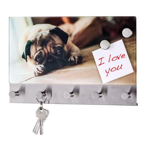 Skab struktur i garderoben med denne smarte knagerække med glasbillede fra det velkendte tyske Wenko. Her kan du placere tunge frakker, tasker, nøgler og andre genstande til ophæng. Du kan ligeledes hænge dine vigtigste påmindelser op på tavlen med de medfølgende to magneter. Fremstillet i rustfrit stål med glasbillede og leveres med monteringsmaterialer.
