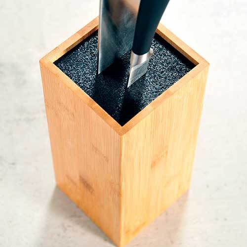 Kvalitets knivblok, der er fremstillet i bæredygtigt, miljøvenligt og FSC-certificeret bambus. Indvendigt er knivblokken forsynet med små plastikstave, der er fleksible og lader dig placere knivene i blokken som du ønsker. Plastikstavene er tilmed nemme at rengøre. Leveres uden knive og kommer fra tyske Kesper.