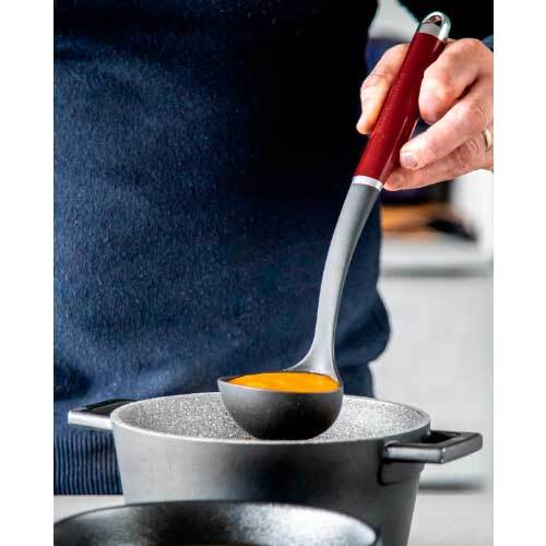 Kvalitets Artisan suppeske, der er fremstillet i robust nylon, som kommer fra det velkendte og kvalitetsstemplede KitchenAid. Suppeskeen er varmeresistent op til 232 grader. Forsynet med ergonomisk korrekt håndtag med ekstra godt greb. Særdeles velegnet til opvaskemaskine og derfor nem at rengøre.