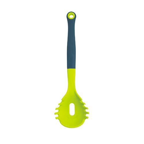 Smart spaghettiske, der er helt perfekt til den daglige brug i køkkenet. Fleksibel pastaske, der grundet silikonen nemt kan presses ind mod kanten af gryden uden at lave ridser og trække pastaen med op. Skeen er forsynet med drænhul, så det overskydende vand fra pastaen let kan passere her. Det er dog mere end bare et drænhul, da samme hul kan benyttes til afmåling af spaghetti portioner til voksne.