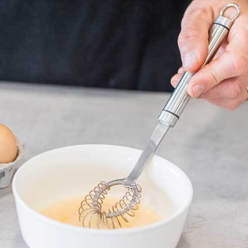 Kvalitets piskeris i stilrent rustfrit stål fra engelske KitchenCraft og Professional serien. Fjederen i enden af piskeriset sikrer en forbløffende effektivitet og hurtighed, der er stærkt vanedannende. Særdeles velegnet til opvaskemaskine og derfor nem at rengøre.