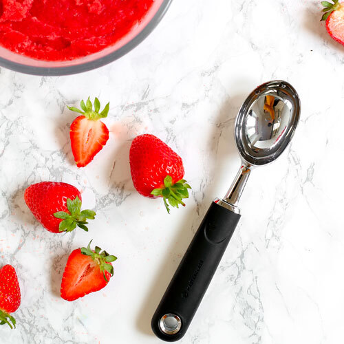 Kvalitets iskugleske, der er fremstillet i rustfrit stål med blød belægning på håndtaget. Kommer fra engelske KitchenCraft og MasterClass serien. Forsynet med ergonomisk korrekt håndtag med ekstra godt greb. Særdeles velegnet til opvaskemaskine og derfor nem at rengøre.