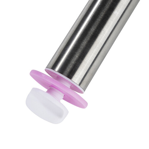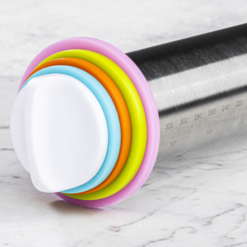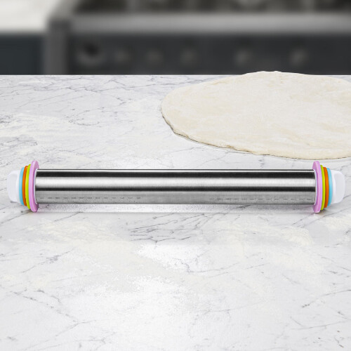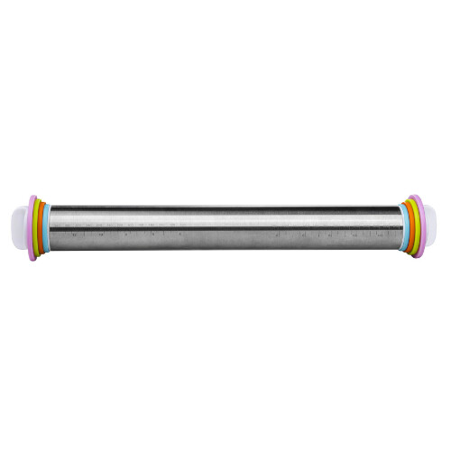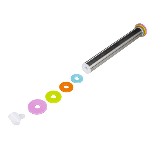Smart og praktisk justerbar rullepind/kagerulle fra tyske Chefware. Med denne kagerulle bliver det let som en leg at rulle din dej jævnt ud, så du får en præcis tykkelse på dejen hver gang. Med de 4 sæt afstandsringe til rullepinden, har du mange muligheder for at rulle din fondant/marcipan/dej m.m. ud i flere forskellige tykkelser, henholdsvis i 2, 3, 6 og 10 mm. Selve rullepinder er fremstillet i rustfrit stål med påtrykt praktisk millimeter skala.