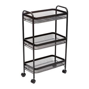 Pladsbesparende og smart universalvogn i tidløst design, der kommer fra franske 5five. Vognen er fremstillet i robust metal med sort pulverlakering og træhåndtag øverst. Vognen er forsynet med tre kurve med trådnet, samt fire hjul hvoraf to af dem har bremsefunktion. Flot kombination af praktisk funktionalitet og design i et. Kan benyttes som badeværelsesvogn, køkkenvogn og i mange andre af boligens rum. Hurtig og nem at samle og kan benyttes til mange forskellige typer af opbevaring i boligen.