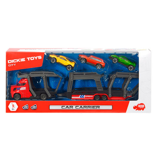 Underholdende Dickie Toys legetøjsbil, der er designet som biltransporter med 3 løse biler. Fremstillet i metal og plast, der kommer fra Dickie Toys. Egner sig til børn ældre end 3 år. Med denne lastbil er dit barn sikker på at få en masse timers fantasifuld leg.
