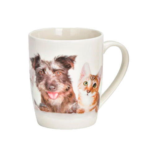 Dekorativt krus, der er fremstillet i kvalitets porcelæn med flot motiv med hund og kat. Nyd din varme drik med et hyggeligt krus med motiv, der kommer fra tyske G. Wurm.