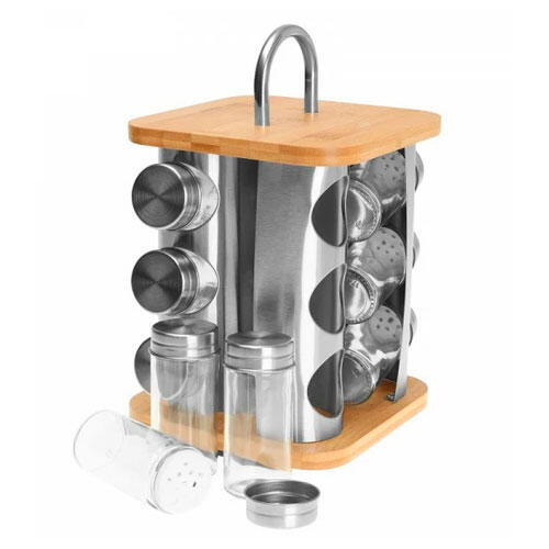 Få let overblik over dine krydderier og hold dem samlet på et sted. Velegnet til at have stående på køkkenbordet. Der medfølger 12 stk. strøglas med låg til krydderiopbevaring.