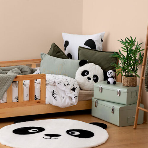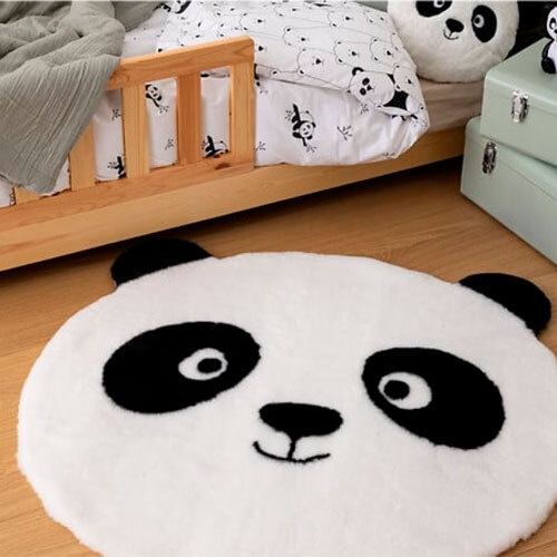 Dekorativt tæppe med panda design, der kommer fra franske Atmosphera. Passer perfekt ind på børneværelset, da tæppet ikke fylder meget og er nemt at flytte rundt på. Tæppet er fremstillet i 100% polyester og er dejligt blødt at træde på. Tæppet er også forsynet med Øko-tex standard 100 certifikat og tåler vask ved 30 grader.