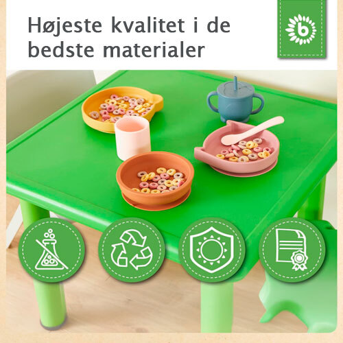 Yderst holdbart og funktionelt børnebord til både indendørs og udendørs brug, der kommer fra tyske Bieco. Stabilt børnebord i topkvalitet, der er fremstillet i vejrbestandigt PP-plast med pænt afrundede hjørner og kanter. Det er forsynet med grøn farve og kan justeres lidt i højden mellem 52-54,5 cm. Meget nem rengøring, da det blot kan aftørres med en fugtig klud med mild sæbe. Anvendeligt til børn, der er ældre end +12 måneder. Passer sammen med stolene i samme serie, der også lagerføres.