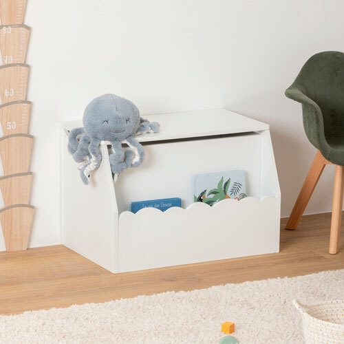 Praktisk og funktionel bogreol til børneværelset, der kommer fra franske Atmosphera. Stabil reol i god kvalitet, der er fremstillet i robust MDF træ med hvid lakering. Forsynet med stort opbevaringsrum, hvor låget har soft close funktion. Super anvendeligt møbel til opbevaring af bøger og andre ting på børneværelset. Hurtig og nem at samle.