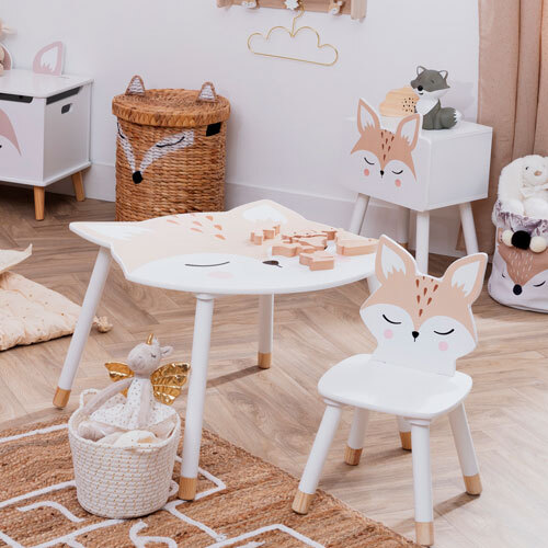 Praktisk og dekorativ Fox børnestol til børneværelset, der kommer fra franske Atmosphera. Stabil børnestol i god kvalitet, der er fremstillet i robust MDF træ og fyrretræ med flerfarvet lakering. Hurtig og nem at samle og så passer det sammen med bordet i samme design. Tåler maksimal belastning på ca. 100 kg. Sædehøjde ved 25,7 cm.