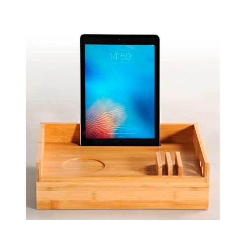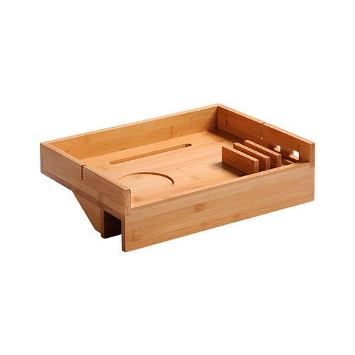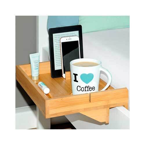 Smart og praktisk bakke til sengekant, der er fremstillet i bæredygtigt, miljøvenligt og 100% FSC-certificeret bambus. Forsynet med holder til tablet, kopholder og plads til andre småting på bakken. Kommer fra tyske Kesper og kan monteres på sengekanter, der måler mellem 1-3,7 cm. i tykkelsen.