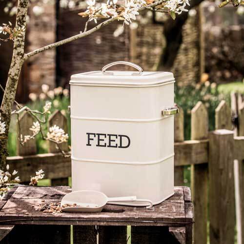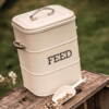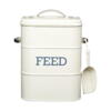 Praktisk beholder til dyrefoder, der kommer fra engelske KitchenCraft. Fremstillet i robust stål med cremefarvet lakering og dekorativt tekstmotiv. Låget er forsynet med håndtag, der gør det nemt at tage af og sætte på igen. Der medfølger ligeledes en 70 gr. metal ske, der kan hænge på et af håndtagene. Kan eksempelvis benyttes til fuglefoder, fedtkugler, kattefoder eller hundefoder. Beholderen sørger for, at indholdet holder sig frisk i længere tid.