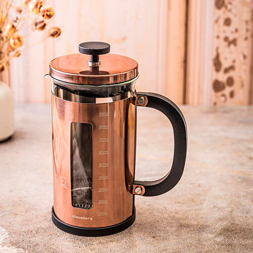 Hvis du elsker at forkæle dig selv med en rigtig god kop kaffe, så er denne stempelkande lige sagen. Her får du en kvalitets stempelkande, der er fremstillet i rustfrit stål og borosilikatglas og udstyret med komfortabelt håndtag. Den iøjnefaldende kande kommer fra Klausberg og kan ligeledes benyttes til te. Stempelkanden tåler også opvaskemaskine.