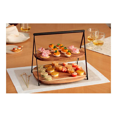 Kvalitets Mina opsats til servering og anretning af snacks, frugt og grønt m.m. Denne opsats giver dig mulighed for at servere indbydende snacks på bordet, når der eksempelvis kommer gæster på besøg. Opsatsen er fremstillet i 100% FSC-certificeret akacietræ med sort metal og håndtag i toppen for nem transport af opsatsen. Leveres adskilt, men er hurtig og nem at samle. Kommer fra franske 5five.