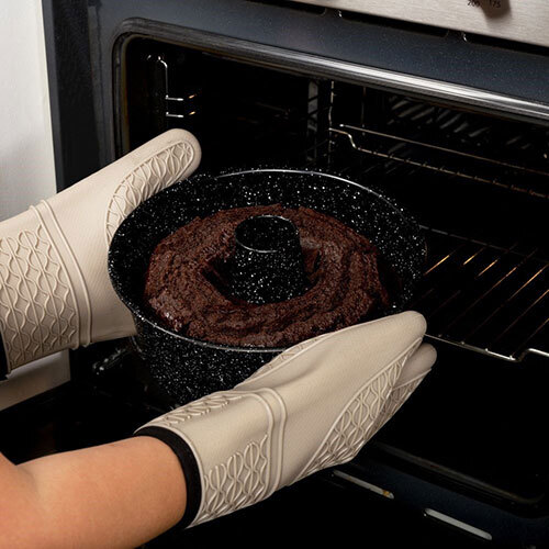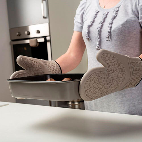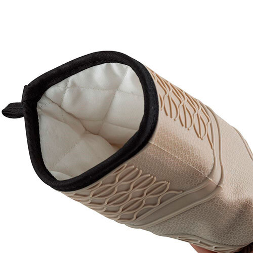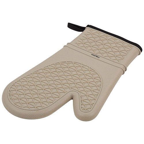 Praktisk Misty ovnhandske, der kommer fra græske NAVA. Ovnhandsken er fremstillet i silikone med mulighed for ophæng og forsynet med anti-slip overflade, der sikrer et godt greb. Silikonen er varmebestandig op til 230 C° og passer både til højre og venstre hånd.