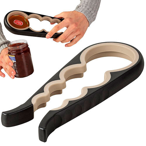 Nyttig Misty skruelågsåbner, der hjælper dig med at åbne forskellige skruelåg i husholdningen. Fremstillet i plast med gummibelægning på indersiden og kommer fra græske NAVA. Nem at rengøre, da den tåler opvaskemaskine. Den passer til låg, der måler mellem 2-8 cm. i diameteren.