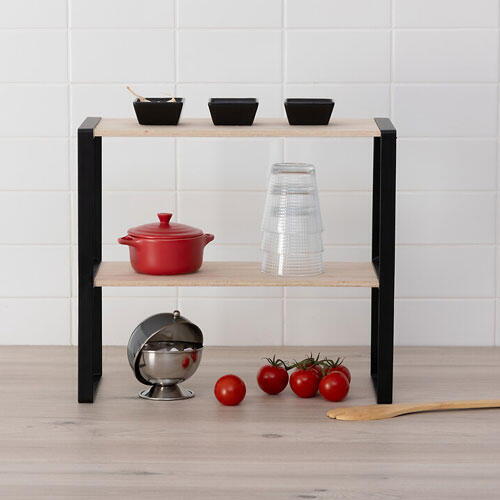 Smart og praktisk Blackwood køkkenbordshylde med god opbevaringsplads, der kommer fra franske 5five. Fremstillet i solidt MDF træ med to hylder og ben i metal med sort pulverlakering. Her får du et smart og multifunktionelt opbevaringssystem til dit køkkenbord, der giver dig alt den plads du står og mangler.