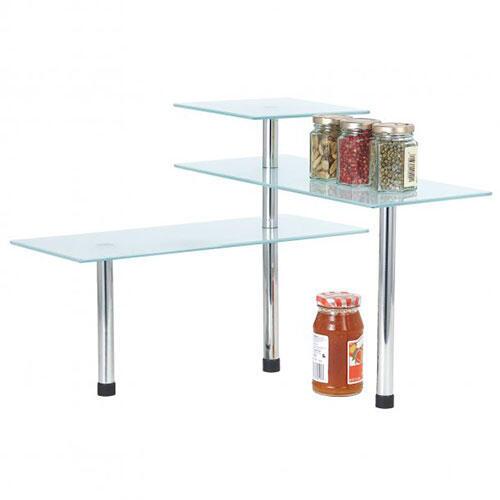 Smart og praktisk køkkenbordshylde med god opbevaringsplads fra tyske Axentia. Fremstillet med hylder i frosted glas og ben i rustfrit stål. Her får du et smart og multifunktionelt opbevaringssystem til dit køkkenbord, der netop giver dig den plads du står og mangler.