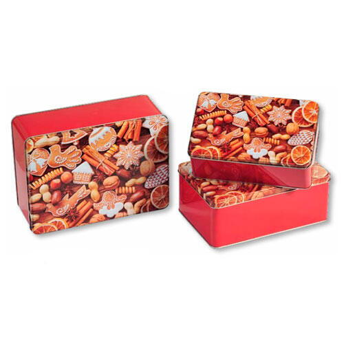 Dekorative kagedåser med motiv i 3'er sæt fra tyske Kesper. Fremstillet i robust stål med julemotiv på låget. Lågene lukker tæt sammen for at bevare friskheden og smagen længst muligt.