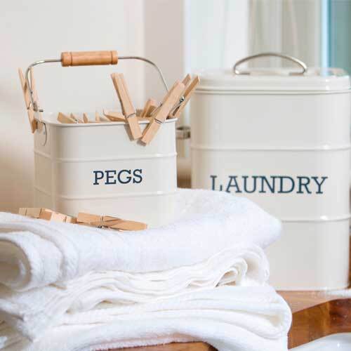 Praktisk beholder til dine klemmer, der sikrer at du altid har dine klemmer i nærheden, når vasketøjet skal hænges op. Beholderen kommer fra engelske KitchenCraft og den er fremstillet i robust stål med cremefarvet lakering og håndtag med krog.