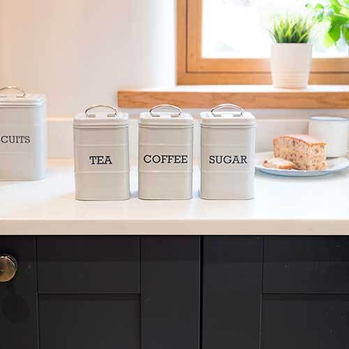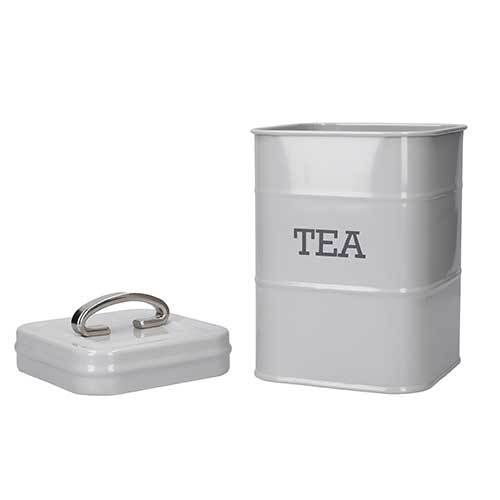 Retro opbevaringsdåse fra engelske KitchenCraft og Living Nostalgia serien. Fremstillet i robust stål med grå lakering. Låget lukker tæt sammen for at bevare friskheden og smagen længst muligt.