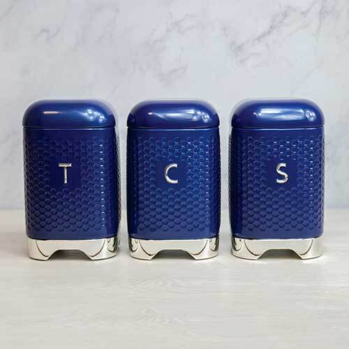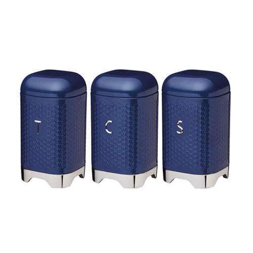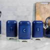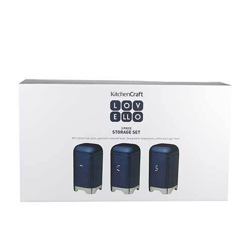 Attraktive retro opbevaringsdåser i en iøjnefaldende farvekombination, der passer perfekt ind i ethvert køkken. Kommer fra engelske KitchenCraft som en del af Lovello serien, der er fremstillet i robust carbon stål med lakering i blå farve. Carbon stålet er et yderst holdbart og stærkt materiale og sættet består af tre dåser til opbevaring af henholdsvis te, kaffe og sukker. Lågene lukker tæt sammen for at bevare friskheden og smagen længst muligt.