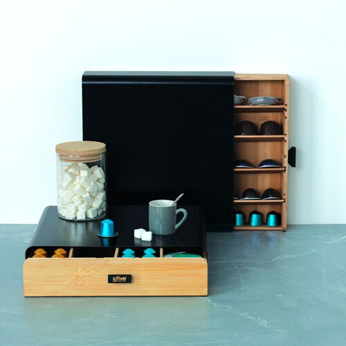 Passer eksempelvis til 30 stk. Dolce Gusto eller 48 stk. Tassimo, når den står horisontalt. Vertikalt kan der være 25 stk. Dolce Gusto eller 48 stk. Tassimo. Kommer fra franske 5five.